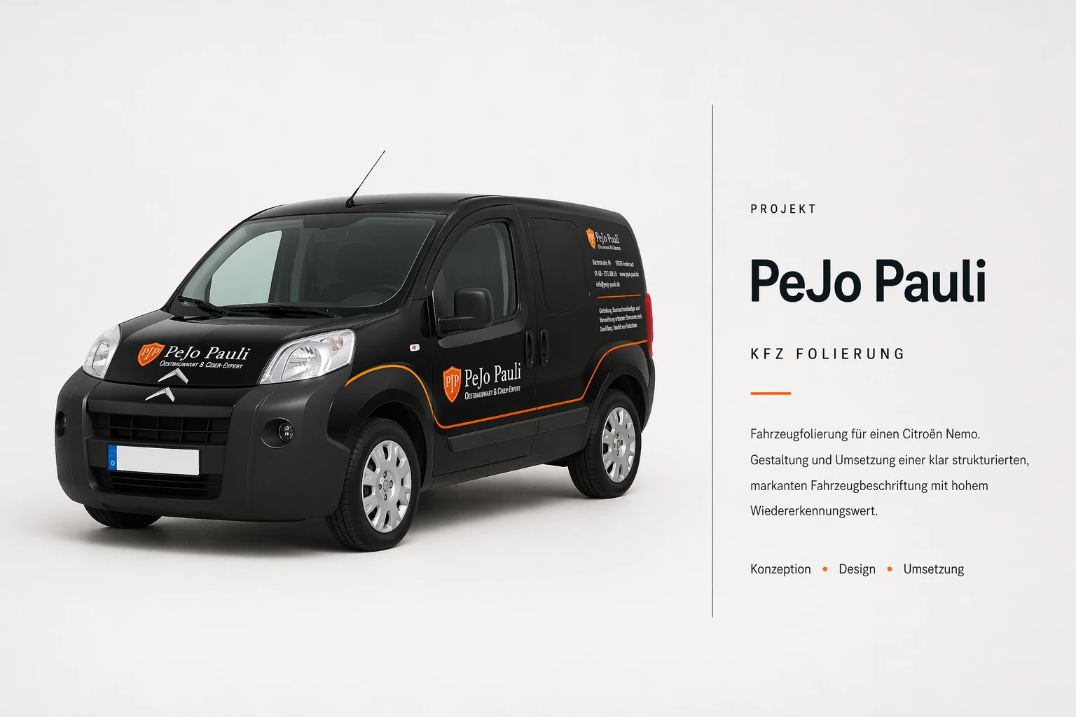 Jedes Projekt erzählt eine eigene Geschichte. Mein Portfolio zeigt ausgewählte Arbeiten aus Grafikdesign, Webdesign, Printprodukten, Corporate Design, Fahrzeugbeschriftung und 3D-Druck.